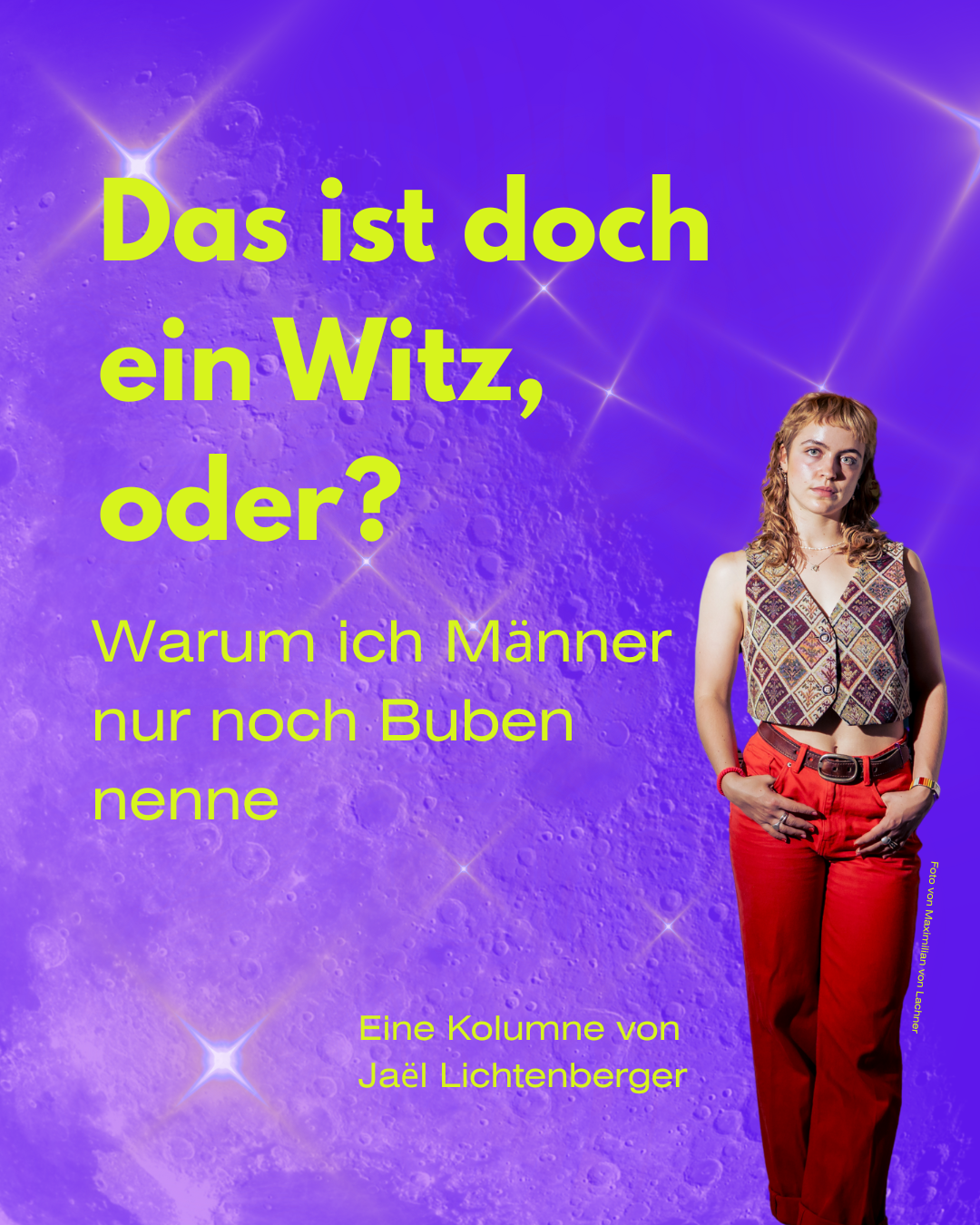 Ich verfolge den Ansatz, die unberechtigte Disbalance patriarchaler Strukturen zu durchbrechen – hier durch die Neuausrichtung eines Wortes. Denn Sprache ist Macht. Deshalb nenne ich Männer nur noch „Buben“.